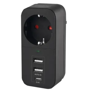 VIDEX ONCORD з/з 1п 2.4A 2USB+USB-C Black Мережевий адаптер з заземленням