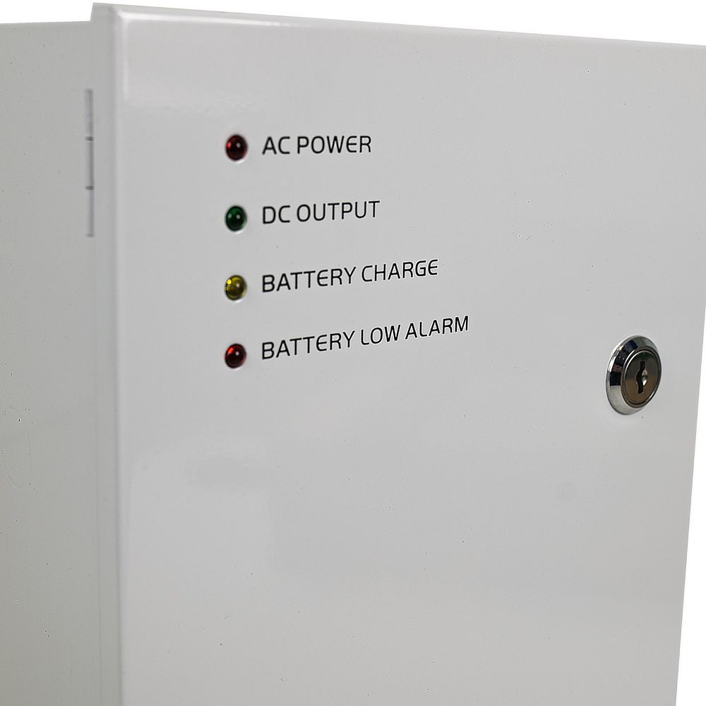 Стан обладнання: зламаний тримач акумулятора. Безперебійний блок живлення імпульсний, одноканальний. Живлення AC100-240V / 50-60Hz клемник, вихідна напруга DC12...14V / 5A, клемник. Відсік для акумулятора: 12В, 18Аг. Захист від перенапруги, КЗ, перевантаження по струму, а також захист заряду / розряду акумулятора. Корпус металевий з кришкою і замком. Розміри 300х195х80 мм