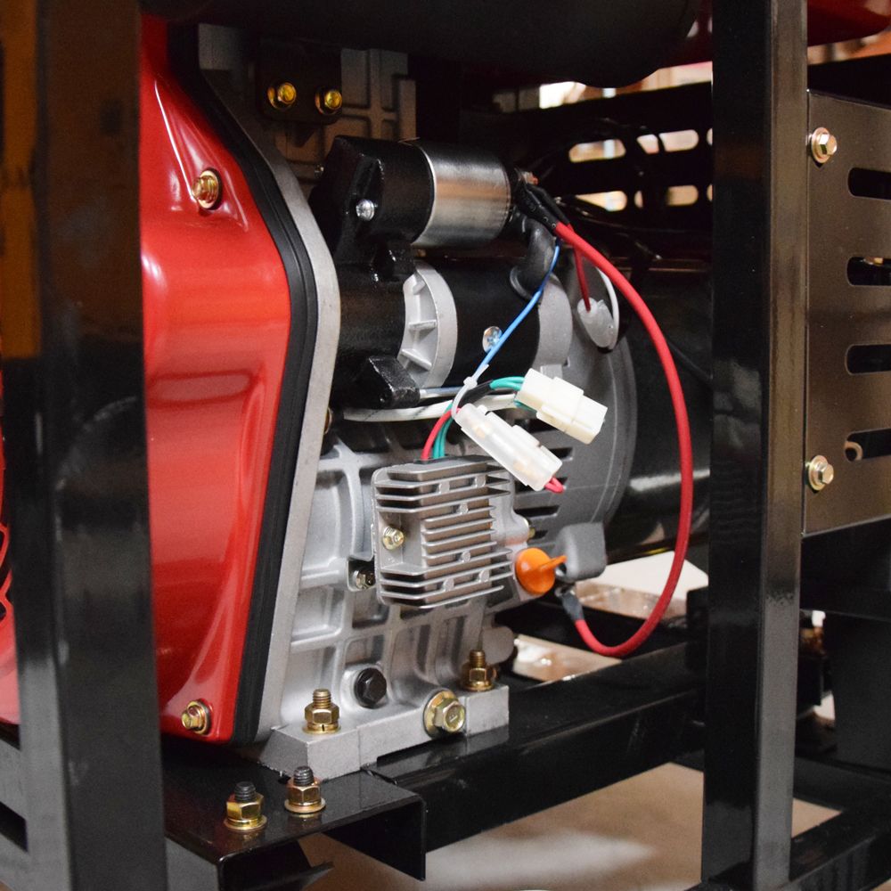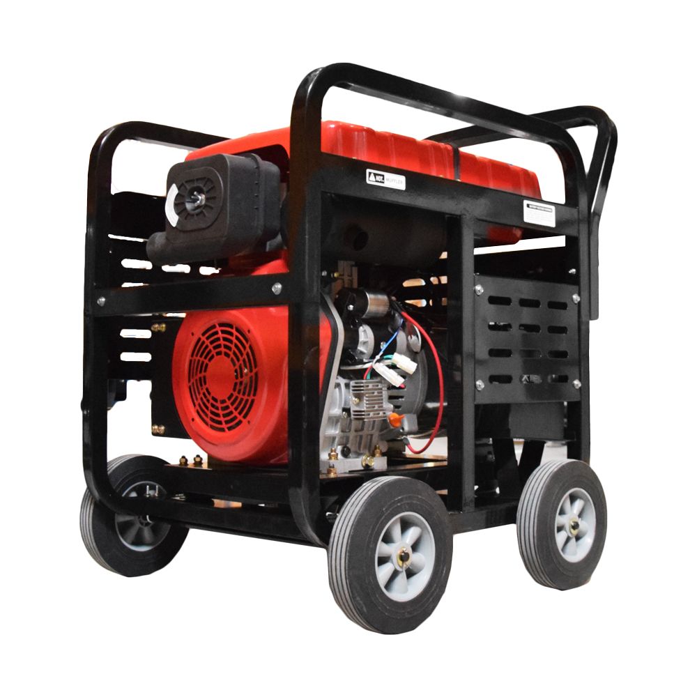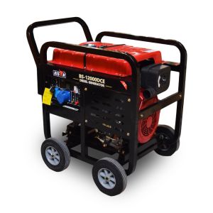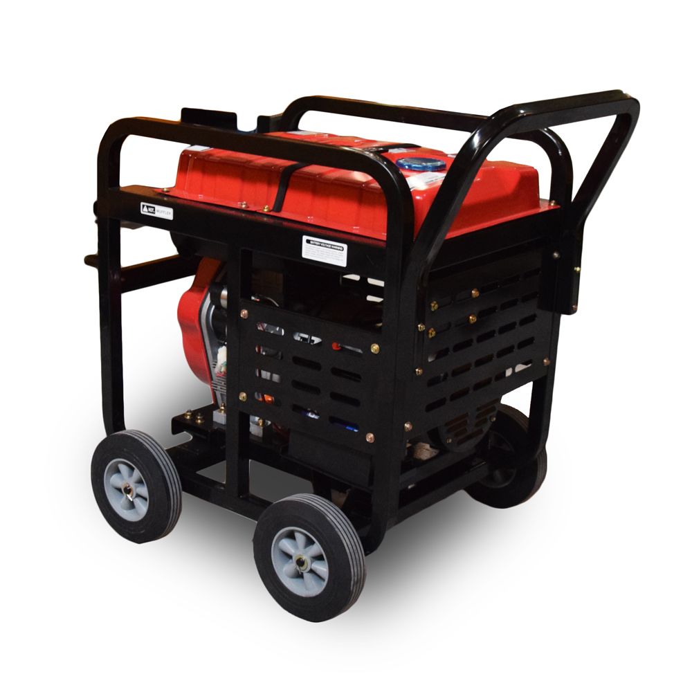 Дизельний однофазний генератор з лічильником мотогодин, колесами і ручками для перенесення. Номінальна потужність: 9 кВт. Максимальна потужність: 10 кВт. Номінальна напруга: 230В. Система запуску: електростартер / реверсивний запуск. Вихід постійного струму: 12 В/8,3 А. Номінальна частота: 50 Гц. Матеріал обмотки: Мідь. Рівень звукового тиску (номінальна потужність на відстані 7 метрів): 84 дБ. Об'єм паливного бака: 25 л. Об'єм мастила: 2.5 л.
