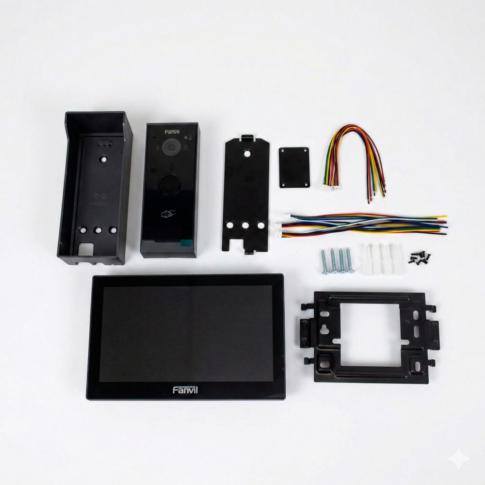 Fanvil VIK-01 — комплект IP-відеодомофона для організації відеозв’язку та контролю доступу в приватних будинках і невеликих об’єктах. Система складається з внутрішнього 7-дюймового сенсорного монітора Fanvil i504W та викличної панелі Fanvil i60 з камерою 2 Мп і кутом огляду 140°. Підтримуються HD-відеодзвінки, дистанційне відкриття дверей через мобільний застосунок Fanvil Link і підключення через Ethernet або Wi-Fi 2.4/5 ГГц. Виклична панель оснащена інфрачервоним підсвічуванням і підтримує відкриття дверей за допомогою карти доступу Mifare, DTMF-коду або дистанційного керування доступом. Система працює за протоколом SIP, підтримує PoE-живлення та інтеграцію з IP-камерами через ONVIF.
