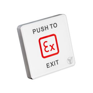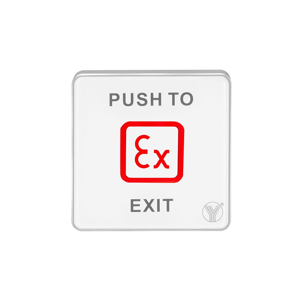 Кнопка виходу сенсорна контактна, вибухозахищена, накладна, NO/NC/COM, корпус покритий загартованим склом, діодна індикація стану кнопки виходу, DC12-24V, струм споживання: 60mA, очікування - червоний, спрацювання - зелений, 86 х 86 х 12 мм.