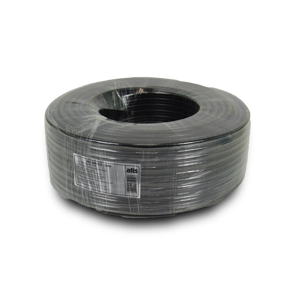 Коаксіальний кабель RG690-Cu+2*0.5 PE комбінований для зовнішнього монтажу. Зовнішня оболонка: PE (поліетилен). Жили живлення: 2. Перетин жили живлення: 0.5 мм² (багатожильна). Матеріал центральної жили: CU (мідь). Опір: 75 Ом. Екранування: 90%. Довжина у бухті: 100 м. Колір: чорний