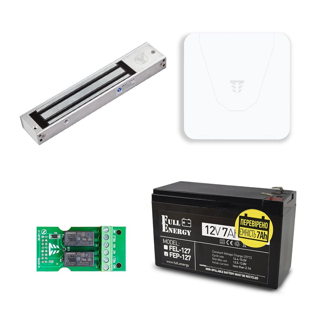 Комплект автоматичного відчинення укриття Tiras-2 дає змогу автоматизувати вхід до сховища під час повітряної тривоги. До складу комплекту входять: ППКОП Orion NOVA M, Модуль розширення на 2 релейні виходи M-OUT2R для ППК Orion NOVA II, Електромагнітний замок YM-280N, Акумулятор 12В 7 Ач для ДБЖ Full Energy FEP-127
