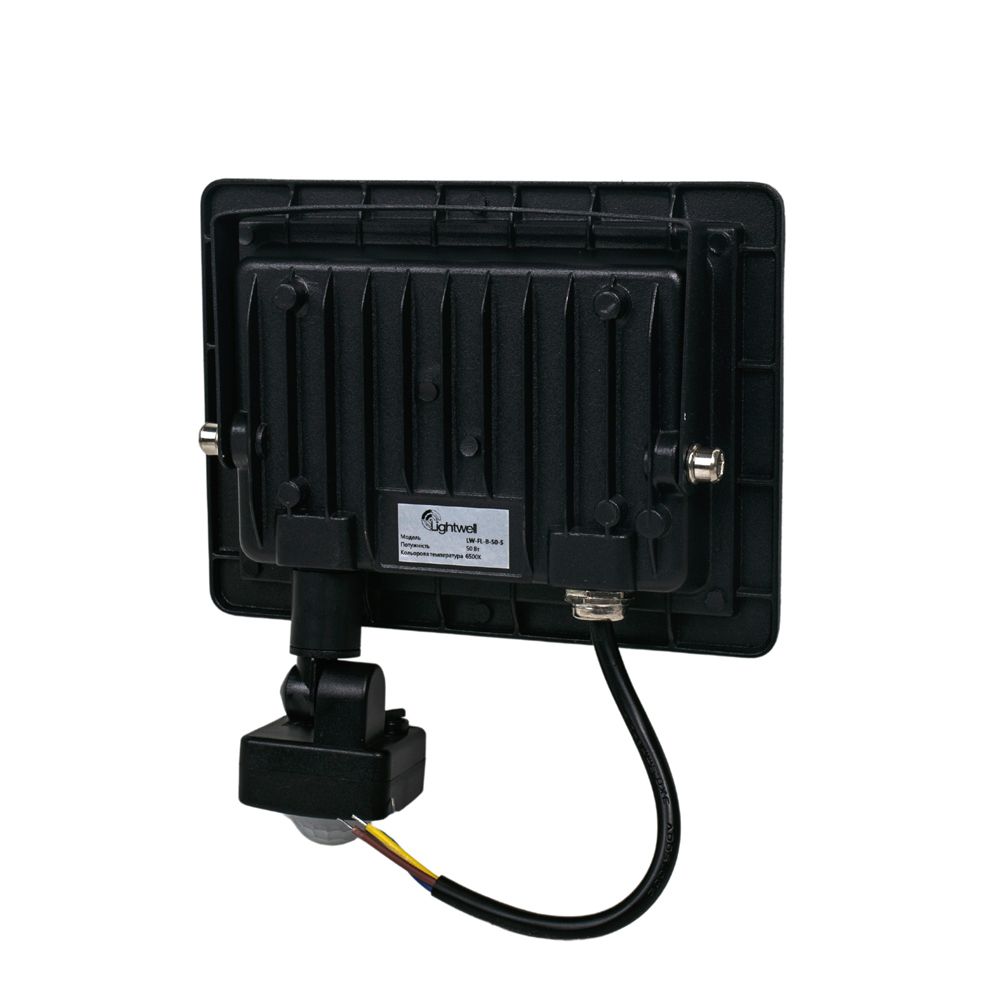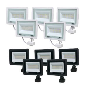 Комплект 5+5 світлодіодних прожекторів Lightwell 50W з датчиком руху: 5 прожекторів у корпусі чорного кольору (LW-FL-B-50-S) та 5 прожекторів у корпусі білого кольору (LW-FL-B-50-S)