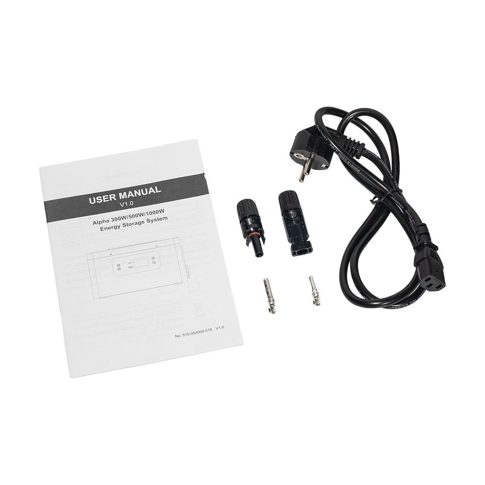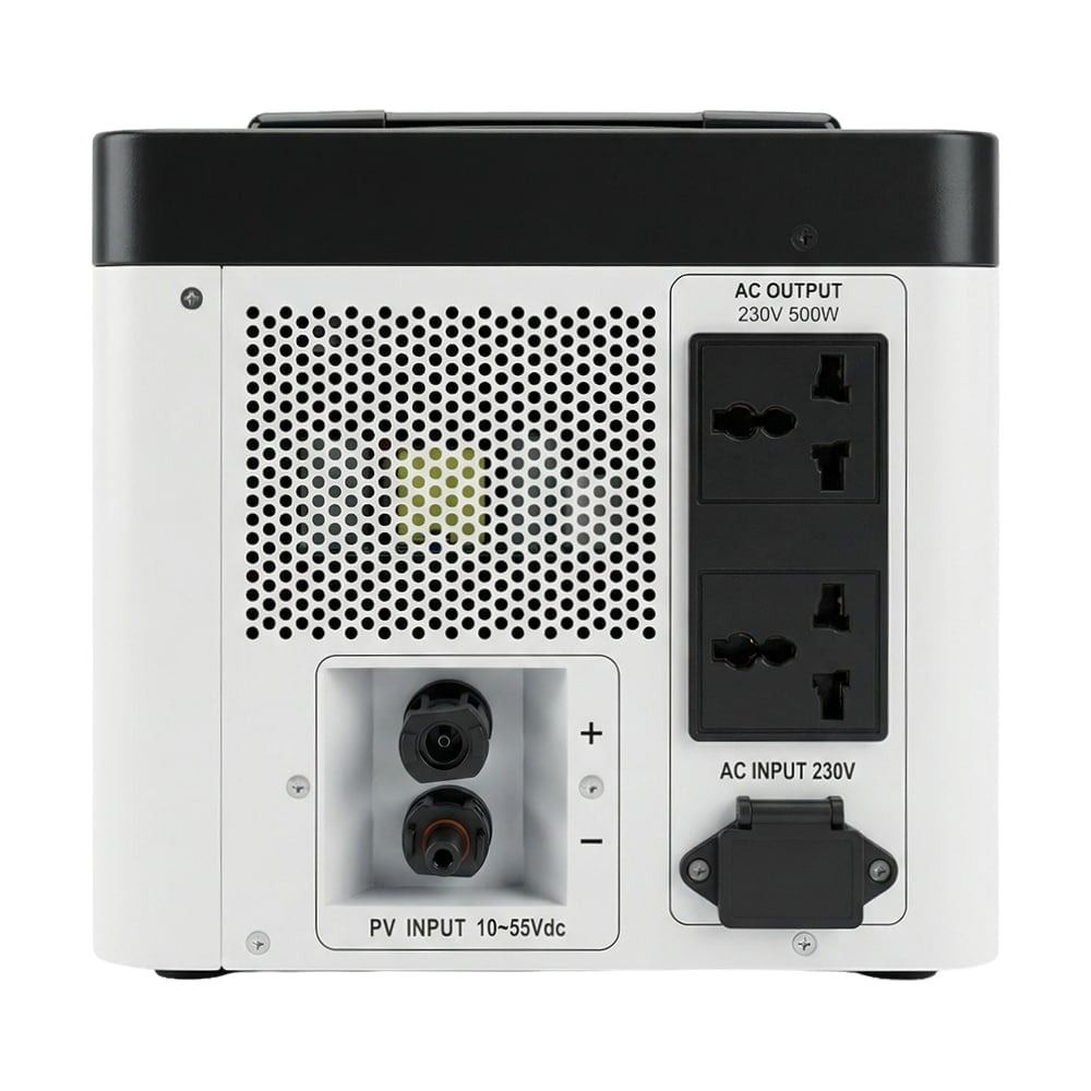 Потужність 500 Вт. Вбудована акумуляторна батарея LiFePO4 енергоємність 1004.8 Вт·год (3.2 В / 314 А·год), максимальний струм заряду/розряду 220 А. Вхідна потужність заряджання від AC 500 Вт макс. Вхідні та вихідні порти: вхід DC для сонячної панелі: діапазон MPPT 10-55 В, макс. потужність 300 Вт; вихід AC: 2 порти 230 В 500 Вт; вихід DC: 2 порти 12В/2.5А (роз'єм 5.5x2.1 мм), загальна максимальна потужність 60 Вт; порти USB: 1 x USB-A; 1 x USB-C; Робоча температура: від -10 до +50 °C. Розміри: 325x210x184 мм, вага 11 кг.