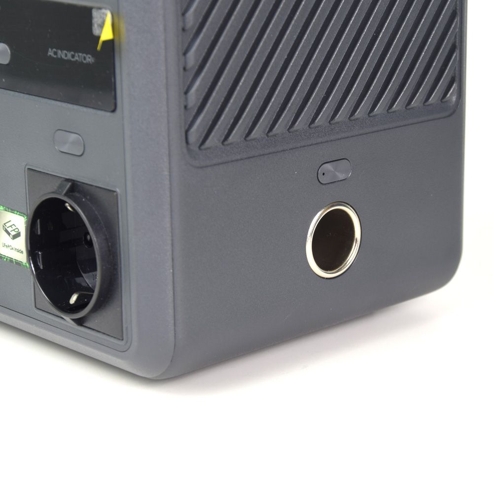 Портативна електростанція потужністю 600Вт / 384Вт·год з літій-залізофосфатною батареєю LiFePO4, 1 євро-розетка форма вихідного сигналу чиста синусоїда, 1 вихідний порт постійного струму 12В / 10А, 2 порти USB-A, 1 порт TYPE-C, світлодіодне підсвічування 5Вт. 6 пристроїв можна заряджати одночасно. Легка конструкція із ручкою.