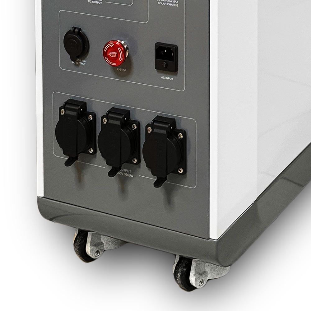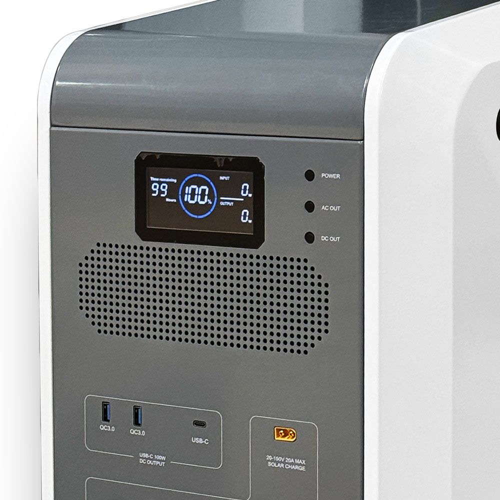 Акумуляторна електростанція потужністю 3600 Вт із LiFePO4 батареєю. Ємність батареї: 5222.4 Вт·год (51.2 В, 102 А·год). Чиста синусоїда. Заряджання: від мережі AC 220 В, 2000 Вт; від сонячних панелей DC 20-150 В, струм до 20 А, макс. потужність 1000 Вт. Виходи AC: 3 розетки 220-240 В, 50/60 Гц. Виходи DC/USB: 2×USB-A (QC3.0), 1×USB-C (5–12 В, до 18 Вт), автомобільний порт 12 В (до 10 А). Розміри: 508 × 310 × 658 мм. Вага: 66 кг