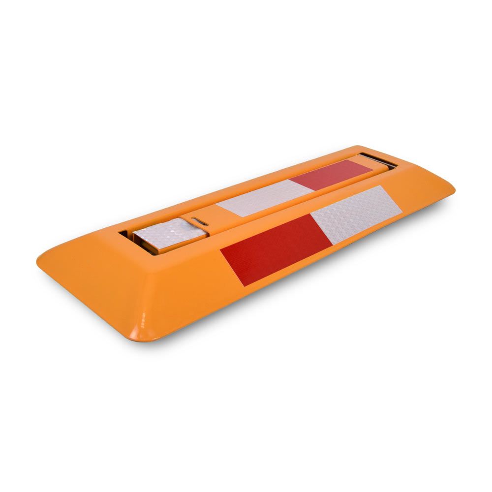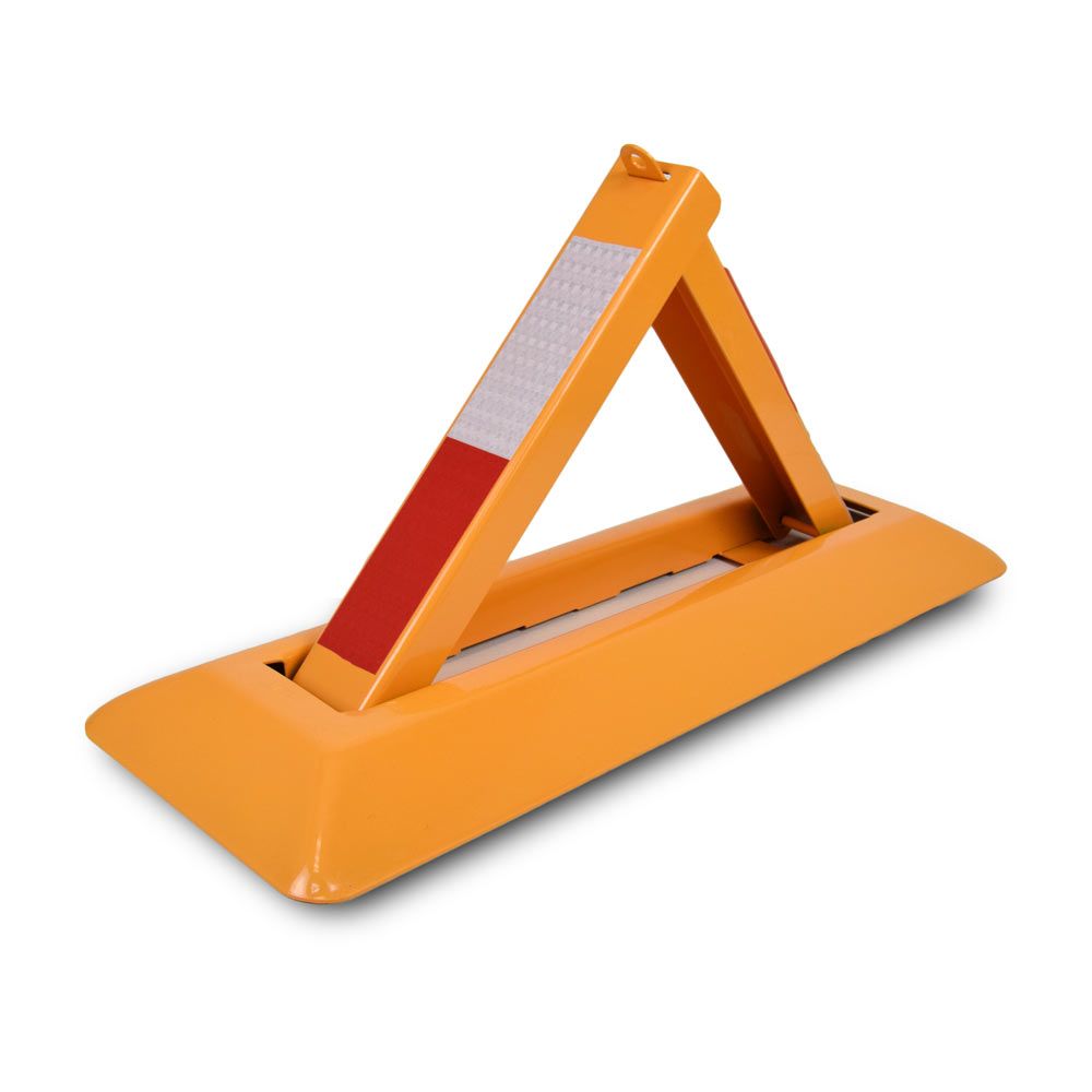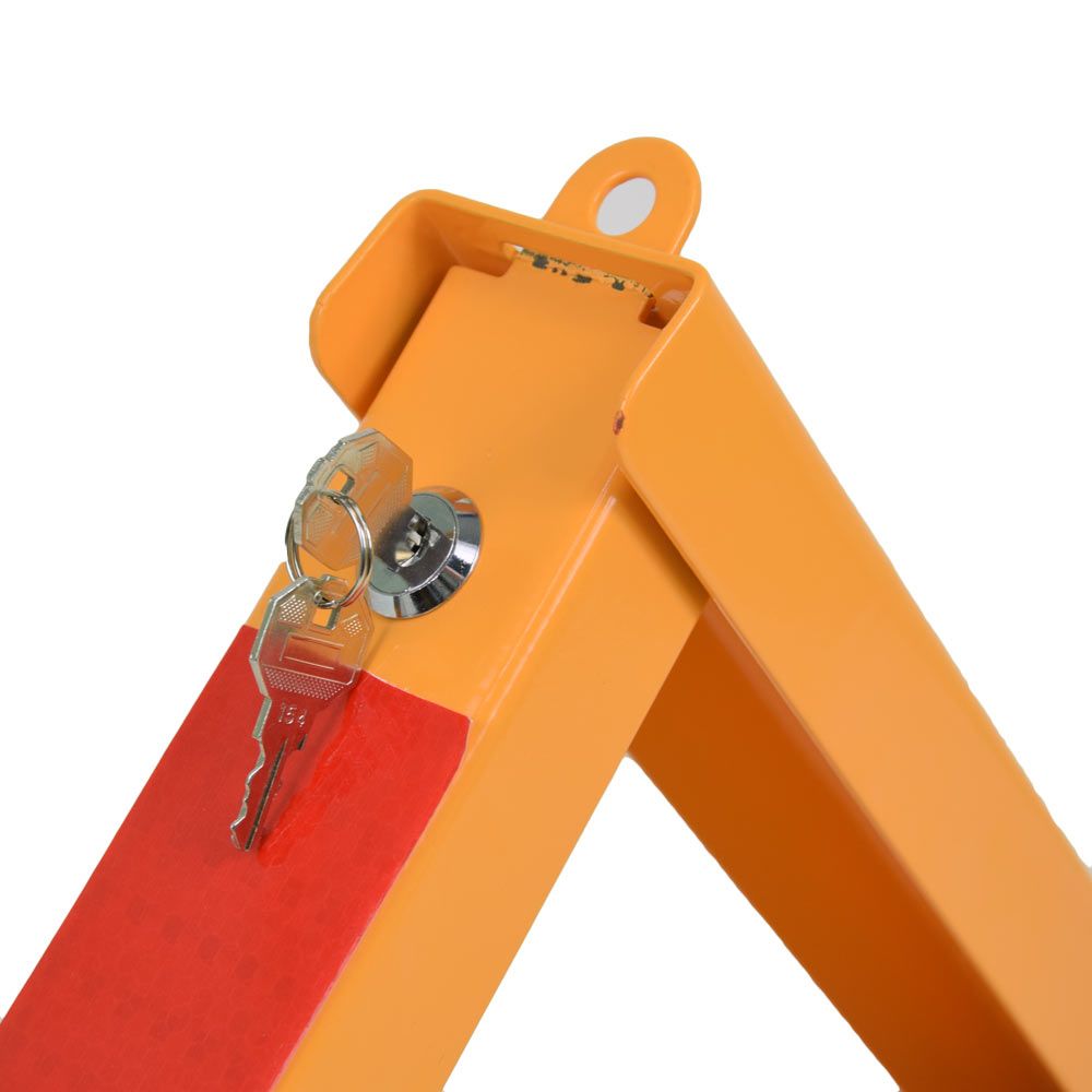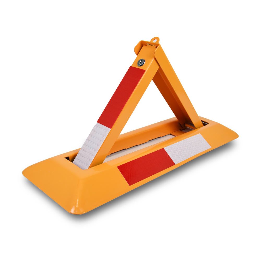 Блокіратор паркувального місця ATIS AB-62 - міцний складаний бар'єр трикутної конструкції, виготовлений зі сталевої 2 мм пластини із захисним забарвленням (розміри 600x200x300 мм, вага 3.5 кг). Пристрій легко встановлюється на тверді поверхні завдяки готовим монтажним отворам. Світловідбивні смуги і яскраве забарвлення забезпечують відмінну видимість вдень і вночі. У комплекті вбудований замок із двома ключами для надійного захисту від несанкціонованого доступу.