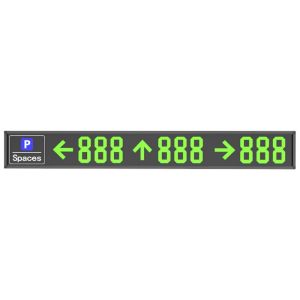 Світлодіодний інформаційний екран. Інформація про 3 напрямки руху. Крок пікселя: 4.75 мм. Колірна індикація: червоний / зелений. Відображення інформації: цифри, текст, стрілки (8 напрямків). Інтерфейс зв'язку: RS-485. Живлення: AC 220 В. Споживана потужність: до 20 Вт. Корпус: алюмінієвий сплав. Робоча температура: -20~+65°C. Внутрішнє встановлення. Розмір: 1410×183×56 мм