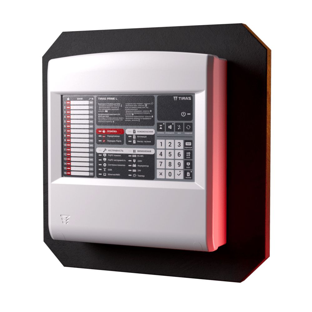 Центральний прилад протипожежної системи Tiras PRIME II від українського виробника TIRAS Technologies. Має сертифікат відповідності EN54. Оснащений 16 вбудованими зонами, що дозволяє використовувати Tiras PRIME L на невеликих та середніх об’єктах. Базові можливості: 16 зон сигналізації, 32 сповіщувачі в кожній зоні, 2+2 виходи. Особливості: сценарії автоматики, інтуїтивна панель управління, режим День/Ніч, журнал на 1000 подій. 2 порти RS-485 (до 16 пристроїв). Живлення: 220 В. Резервне живлення: 2 свинцево-кислотні АКБ або LiFePO4 на 7–8 А·год. Колір: сірий. Гарантія: 36 місяців.