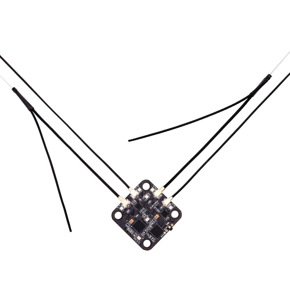 Приймач RadioMaster DBR4 Xross Gemini ExpressLRS призначений для FPV-дронів і радіокерованих моделей. Підтримує діапазони 2,4GHz і 900MHz, частоту оновлення до 500Hz (1000Hz в нових версіях) і сумісний з протоколом CRSF. Оснащений двома незалежними секціями та чотирма антенами для стабільного прийому. Робоча напруга 4,5–8,4В, потужність телеметрії до 2×100mW. Розміри корпусу 27,2×27,2мм, вага з антенами 5,3г.