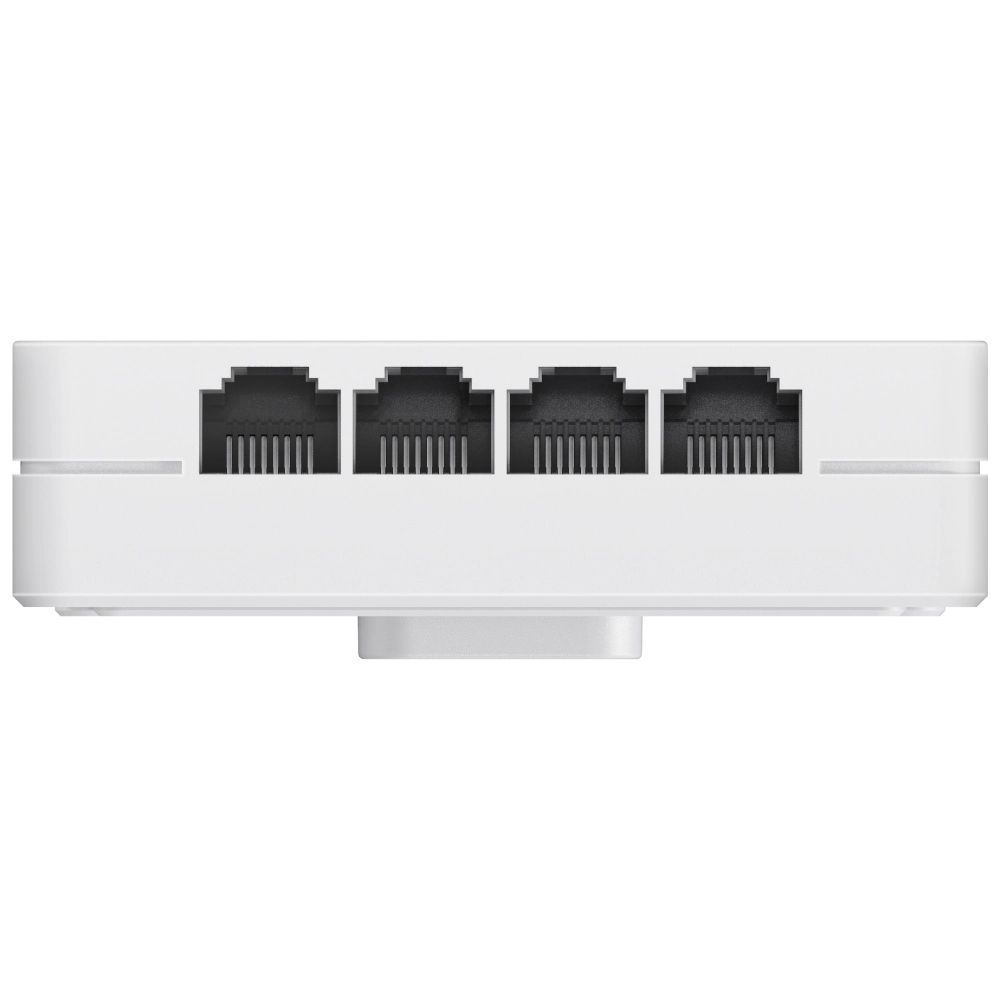 Wi-Fi 6 AX3000 Dual-Band, швидкість до 574 Мбіт/с (2.4 ГГц) і 2402 Мбіт/с (5 ГГц), підтримка MU-MIMO та OFDMA, до 512 підключень, 1 uplink + 4 downlink порти Gigabit Ethernet, живлення PoE (802.3af/at), розміри 124×86×24 мм.