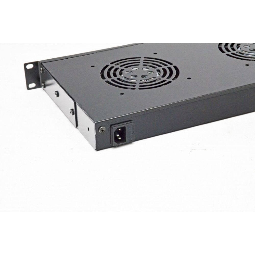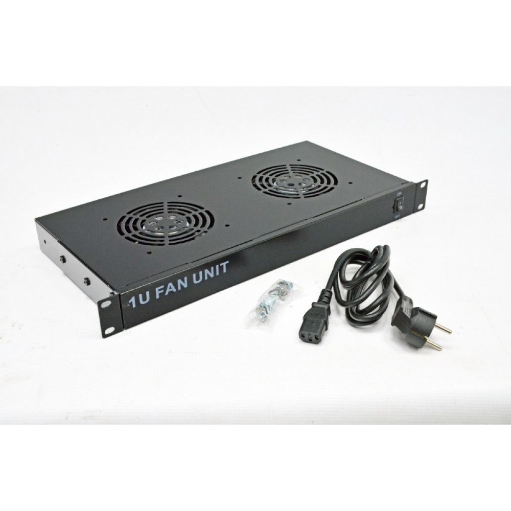 KD700402122 - блок 2-х вентиляторний 1U до шаф з вимикачем, чорний. Вентиляторний блок призначений для охолодження обладнання встановленого в телекомунікаційній шафі. Блок розрахований на встановлення в шафи формату 19".