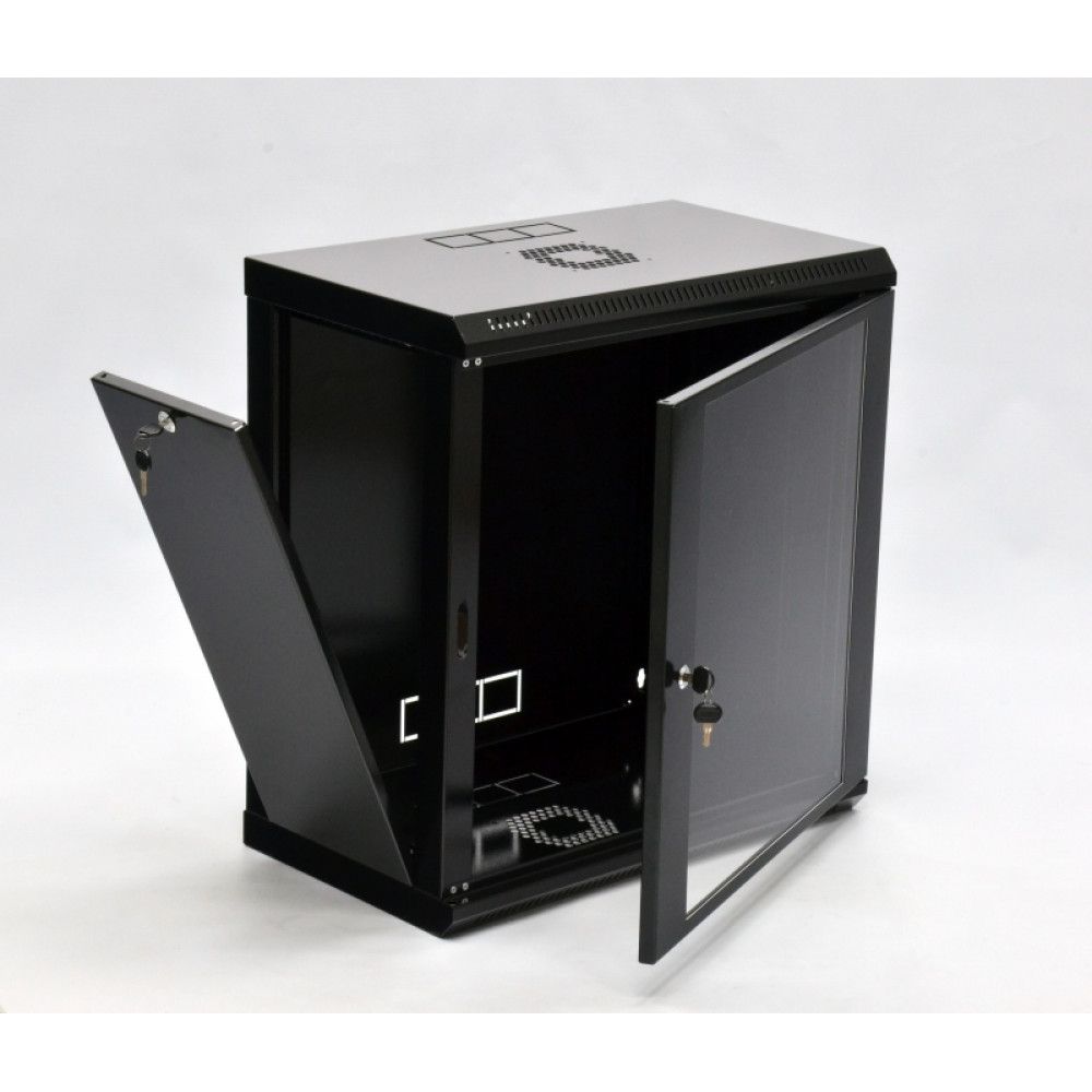 Серверна шафа для розміщення електронного та/або електротехнічного обладнання. Робоча висота: 12U. Товщина металу деталей корпусу: 0.8 мм. Максимальне навантаження: 50 кг. Стандарт: 19". Максимальна робоча глибина для встановлення обладнання: 310 мм. Колір чорний.