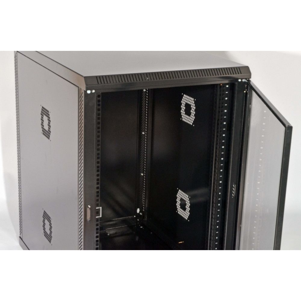 Серверна шафа для розміщення електронного та/або електротехнічного обладнання. Робоча висота: 18U. Товщина металу деталей корпусу: 1 - 1.5 мм. Максимальне навантаження: 80 кг. Стандарт: 19". Максимальна робоча глибина для встановлення обладнання: 760 мм. Колір чорний.