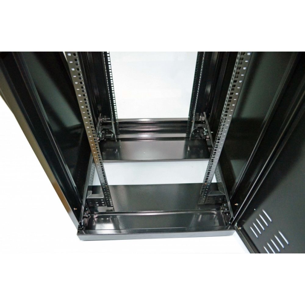 Серверна шафа посилена для розміщення електронного та/або електротехнічного обладнання. Робоча висота: 33U. Товщина металу деталей корпусу: 1 - 2 мм. Максимальне навантаження: 500 кг. Стандарт: 19". Максимальна робоча глибина для встановлення обладнання: 865 мм. Колір чорний.