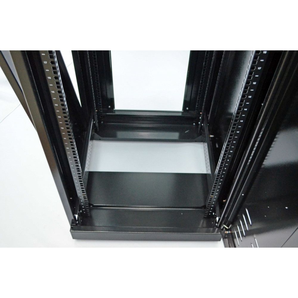 Серверна шафа посилена для розміщення електронного та/або електротехнічного обладнання. Робоча висота: 42U. Товщина металу деталей корпусу: 1 - 2 мм. Максимальне навантаження: 700 кг. Стандарт: 19". Максимальна робоча глибина для встановлення обладнання: 675 мм. Колір чорний.