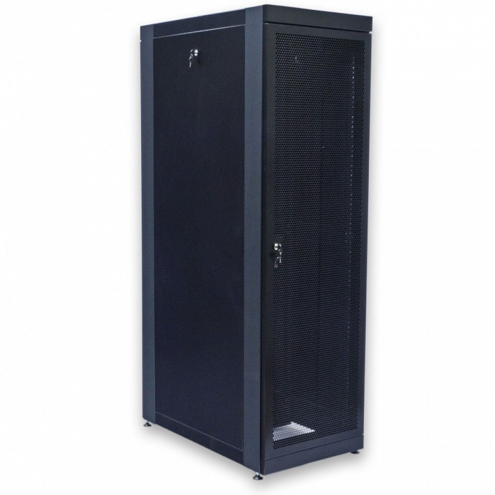 Серверна шафа посилена з перфорованими дверима (66%) для розміщення електронного та/або електротехнічного обладнання. Робоча висота: 45U. Товщина металу деталей корпусу: 1 - 2 мм. Максимальне навантаження: 800 кг. Стандарт: 19". Максимальна робоча глибина для встановлення обладнання: 1055 мм. Колір чорний.