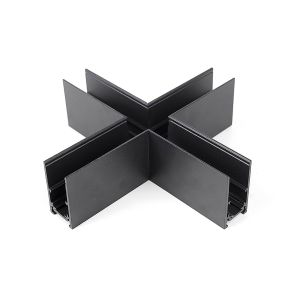 З'єднувач X-подібний для підвісних та накладних магнітних треків. Розмір профілю (Ш × В): 26.8 × 51 мм. Матеріал: алюмінієвий сплав. Колір: чорний