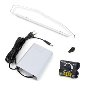 До комплекту для керування LED-підсвіткою з регулятором яскравості входять: регулятор яскравості OKY3220 (димер) 12В/24В до 30А, світлодіодний лінійний світильник Faraday Electronics 450 мм 10 Вт 6500K, безперебійний блок живлення BBGP-122Li-ion і роз'єм-power ATIS (female). Комплект дає змогу керувати яскравістю LED-освітлення, забезпечуючи стабільну роботу системи та рівномірне освітлення. Рішення ідеально підходить для житлових, комерційних і технічних приміщень, які потребують регульованого освітлення. Система забезпечує надійність, зручність керування та можливість адаптації під різні завдання освітлення.