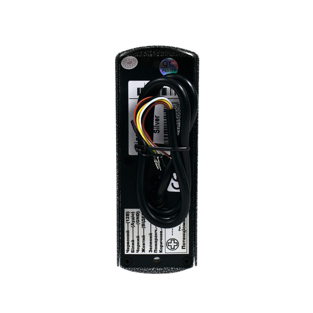 Комплект: відеодомофон і відеопанель. Кольоровий домофон з TFT екраном 4 дюйми і сенсорними кнопками керування, підключення 2 панелей виклику, 2 відеокамер, 2 датчиків тривоги. Розмова по гучному зв'язку, є інтерком. З'єднання з панеллю виклику 4-дротове. слот microSD до 32 Гб, живлення 100-240V, споживання 8 Вт. Корпус домофона білого кольору. Кольорова панель виклику срібного кольору з роздільною здатністю 800ТВЛ і кутом огляду 90°, з накладним способом монтажу. Панель має 4-х дротове підключення до домофона і 2 дроти для електрозамка.