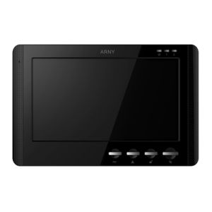 Відеодомофон кольоровий, 7 "TFT LCD (16: 9), 800 * 480, тривалість бесіди 120 сек, живлення в деж.реж. DC12V / 200mA (max), живлення в раб.реж. DC12V / 500mA (max) 2 каналу ( 2 панелі виклику + 1 відеокамера). Гучний зв'язок, інтерком полудуплекс. зв'язок домофон-панель: 4-х провідна. Механічні кнопки управління. Регулювання гучності переговорів і гучності мелодій, яскравості, контрастності, кольоровості. Габаритні розміри: 200х130х22мм. Колір: чорний, без трубки.