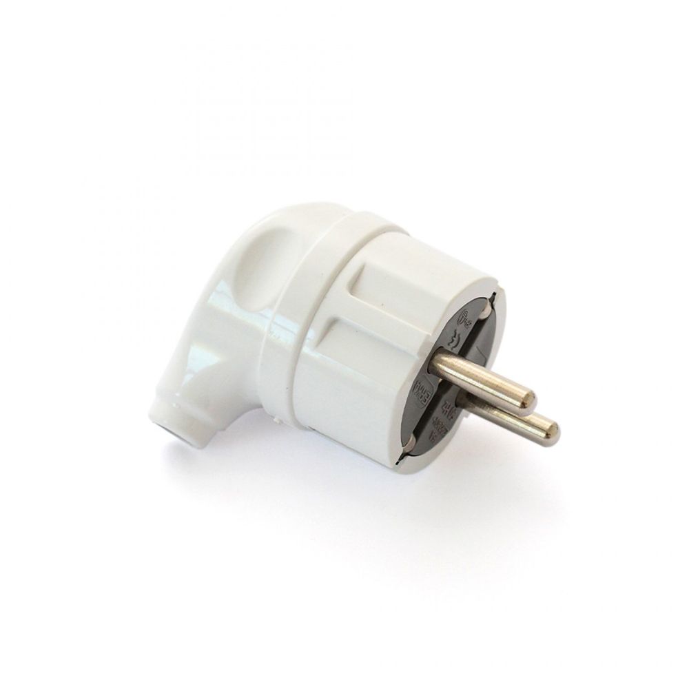 Вилка ERKA 1003 16 А з заземлюючим контактом кутова біла