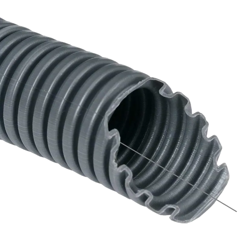 Kopos 750N/5см 20мм ПВХ Бухта 50 м Труба гофрована електромонтажна з протяжкою темно-сіра