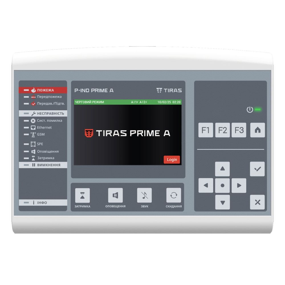 Виносна панель керування для адресної протипожежної системи Tiras PRIME A від українського виробника Tiras Technologies. Сертифікат відповідності EN54. Дублює екранне меню центрального приладу Tiras PRIME A та відображає ті ж повідомлення. Інтерфейси: Ethernet, SPE, USB-C. Живлення: 10-30В; колір сірий. Гарантія 36 місяців.