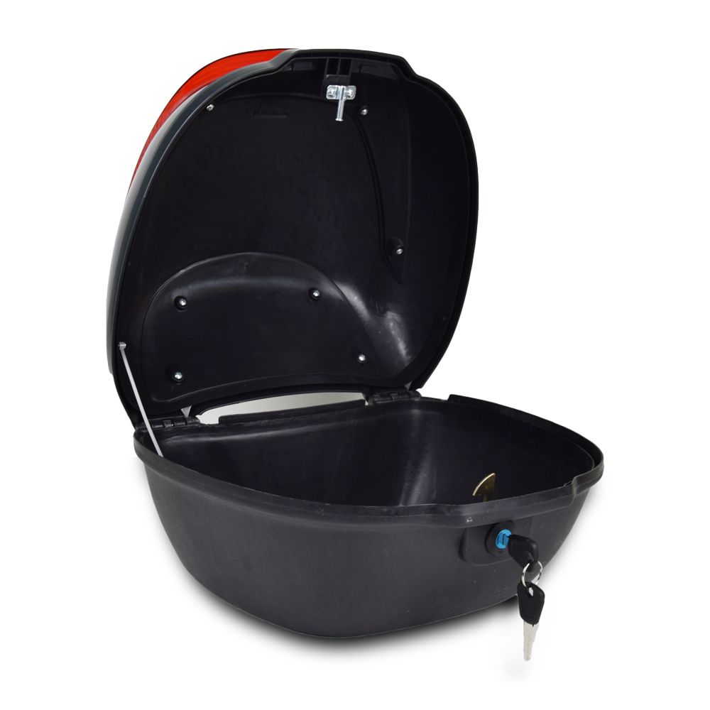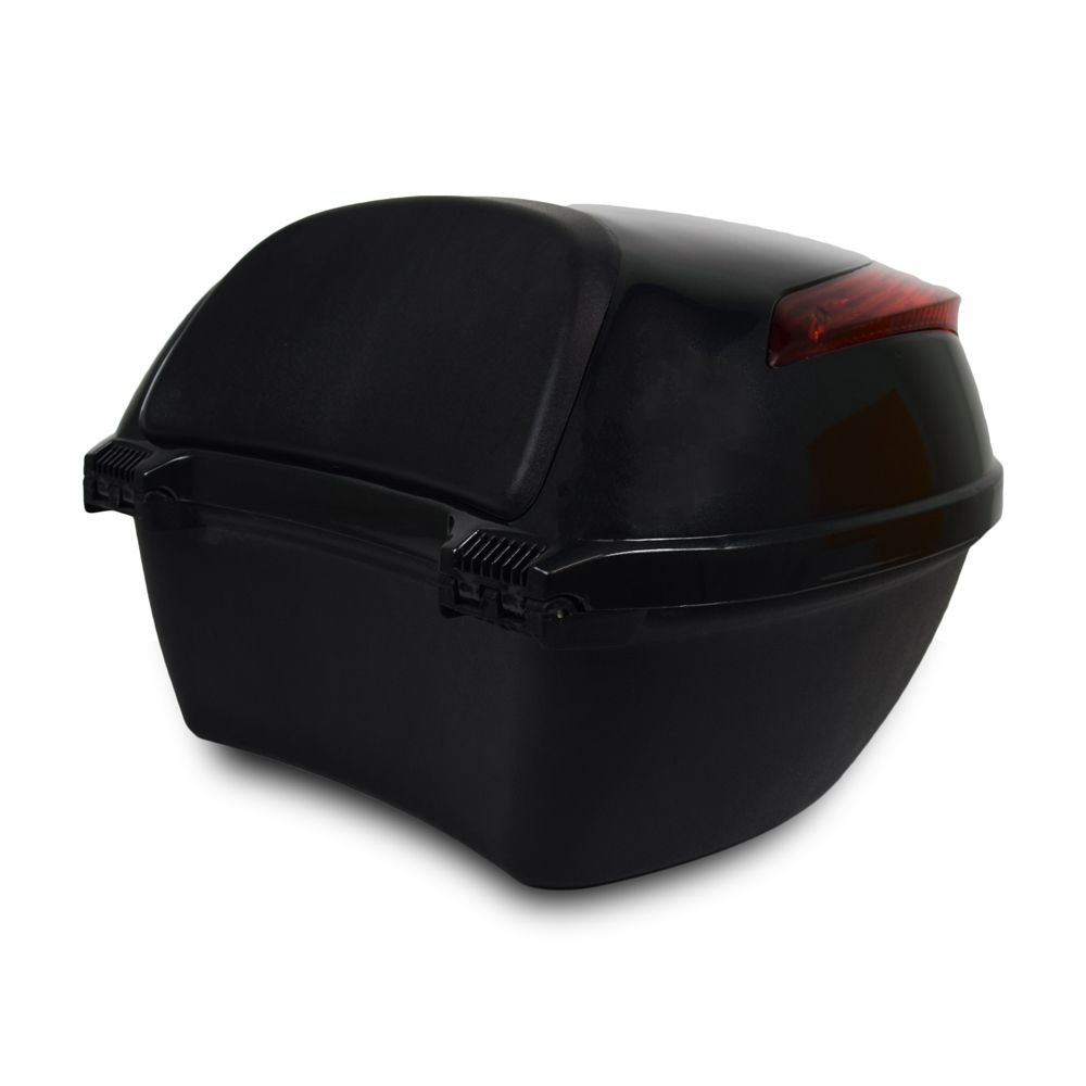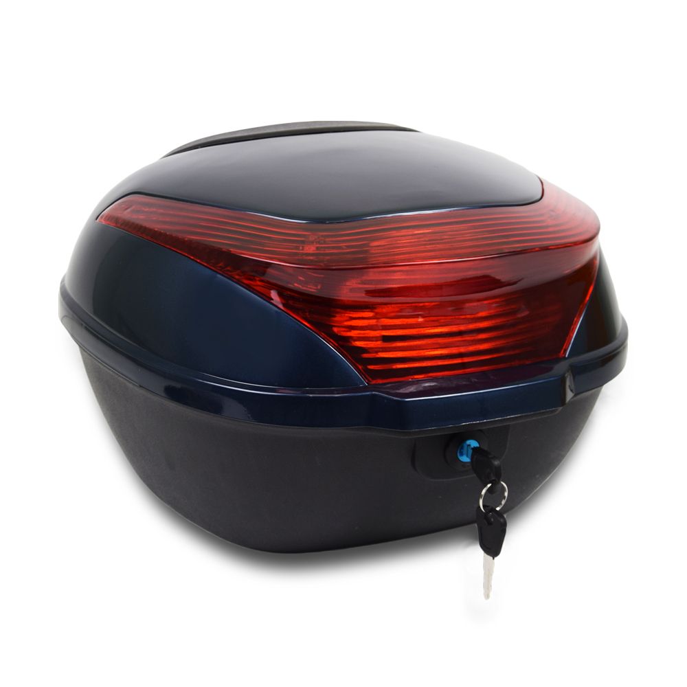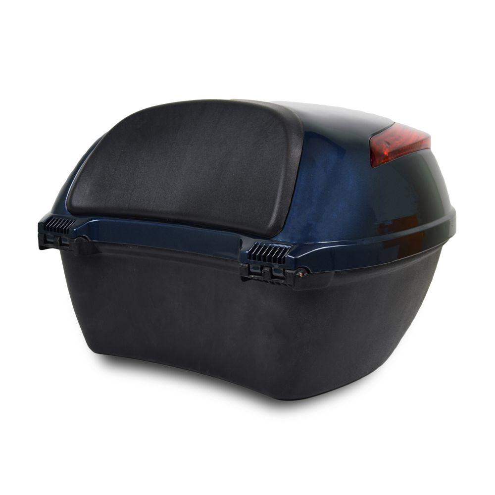 Кофр/багажник Citycoco (Сітікоко) виконаний з міцного ABS пластику. Стійкий до появи подряпин. Не деформується під час удару. Витримує ударні навантаження. Об'єм: 46 л. Місце встановлення: Задній. Габаритний світловідбивач, замок, 2 комплекти ключів. Розміри: 420 x 420 x 250 мм. Вага: ~2 кг. Колір: чорний/синій