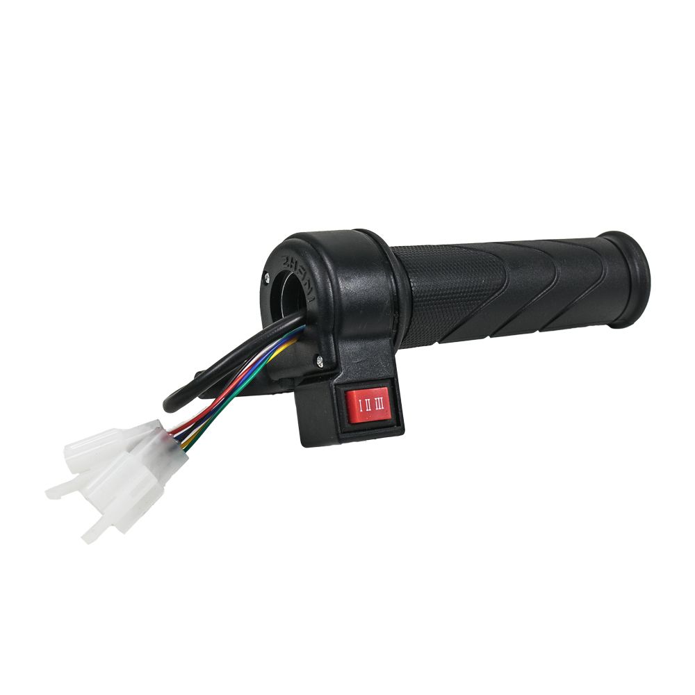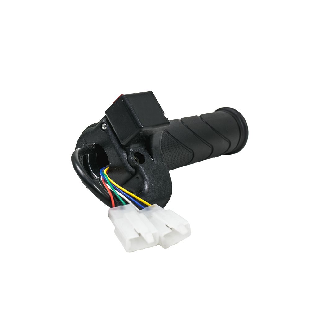 Ручка газу для VISTA-2 (T408-2), VISTA-3 (T408-3), VISTA-L2 (T409-2) обладнана триступеневим перемикачем швидкості та ергономічною прогумованою накладкою. Підключається через стандартні роз'єми з кольоровим маркуванням проводів. Підходить для базових моделей електротранспорту, забезпечує плавне прискорення і стабільний контроль.