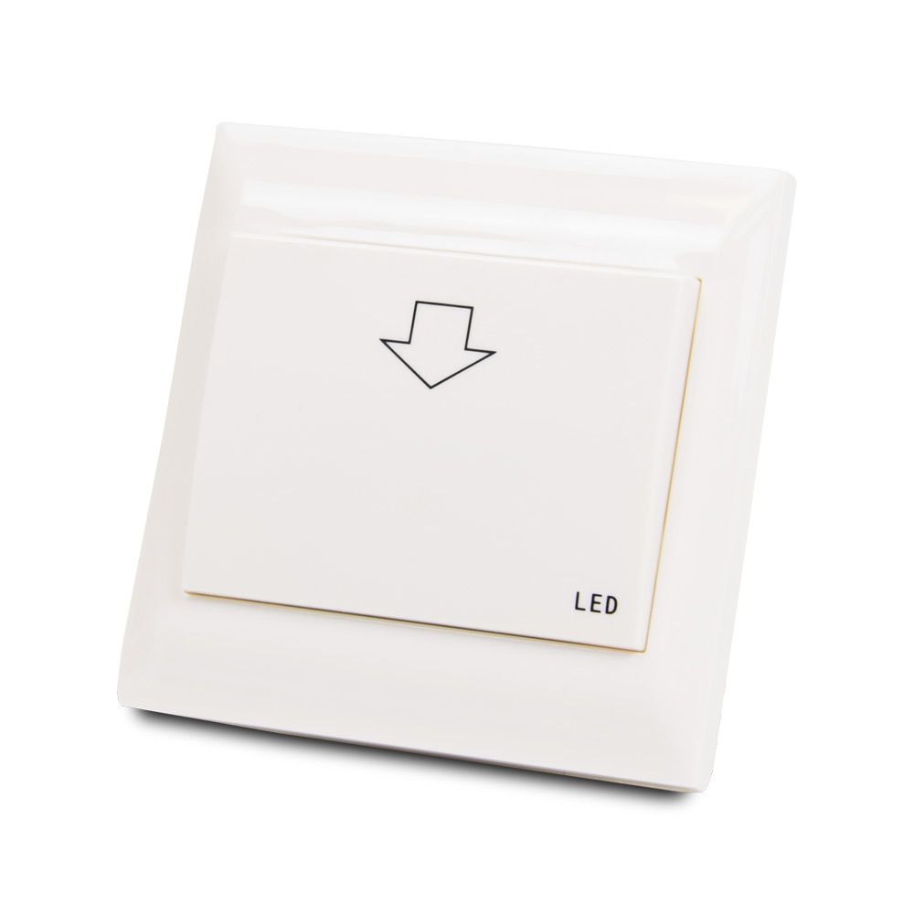 Енергозберігаючий карман для всіх типів карт. Призначений для автоматичного ввімкнення освітлення в номері готелю після розміщення безконтактної карти доступу в кармані. Робоча напруга AC 220 В, комутований струм 30 А. Габаритні розміри: 86 х 86 х 44 мм. Вага: 148 г.