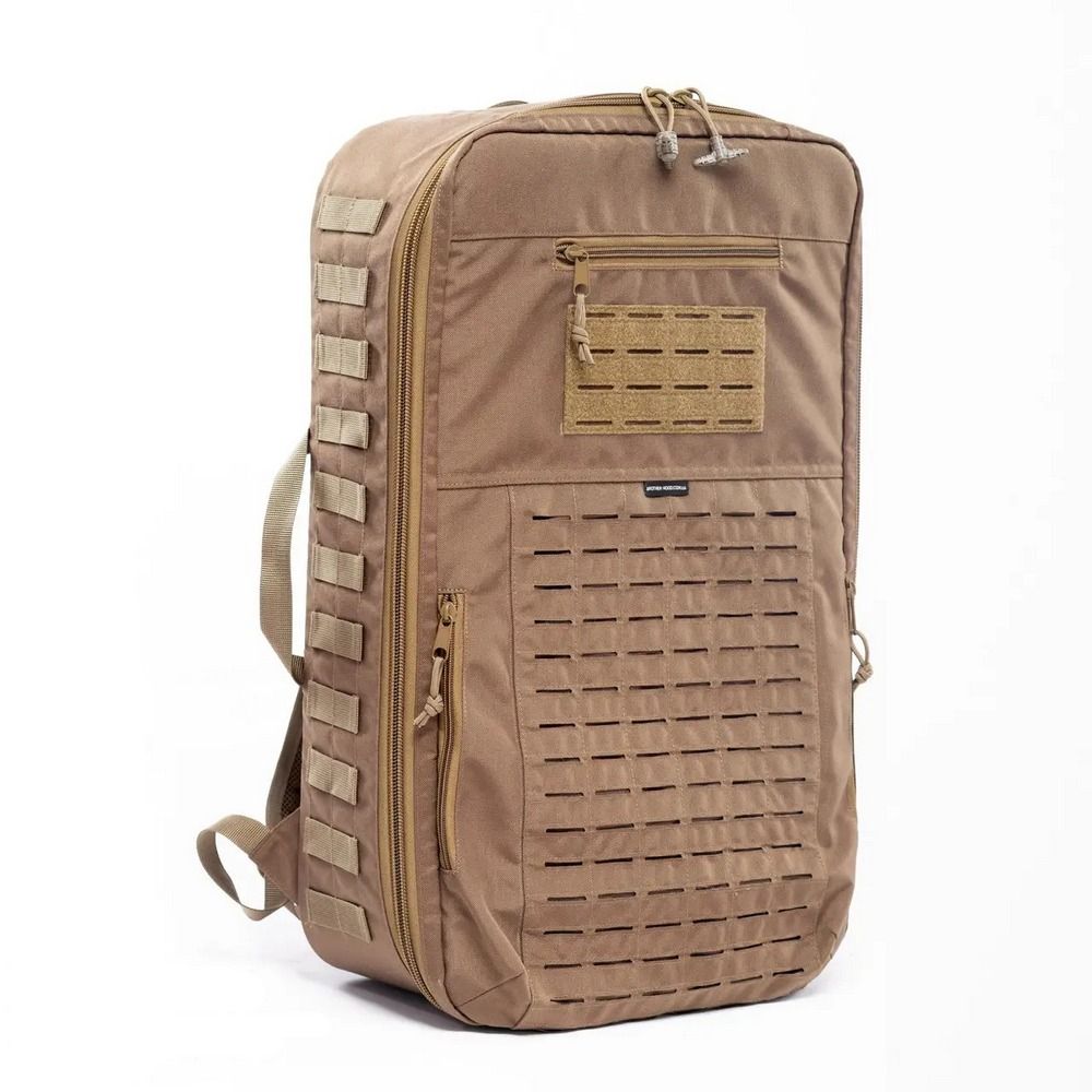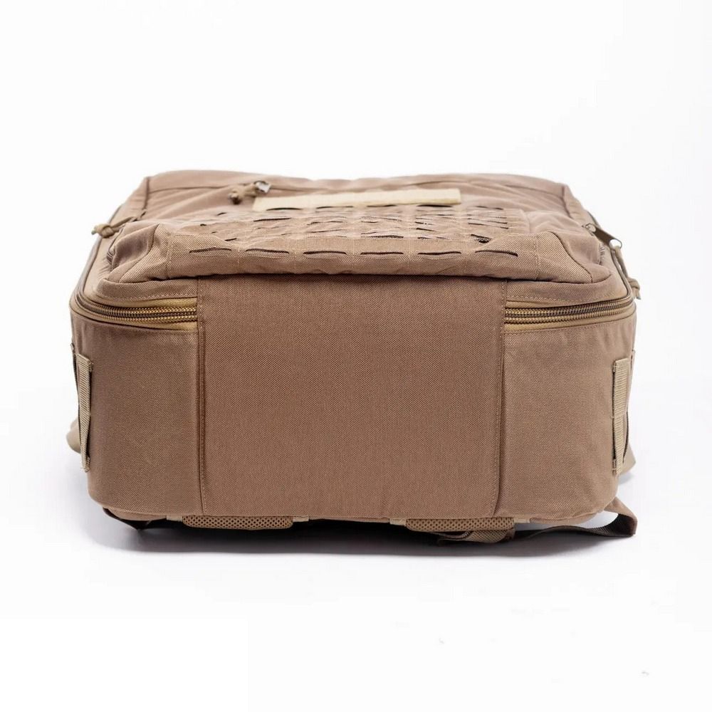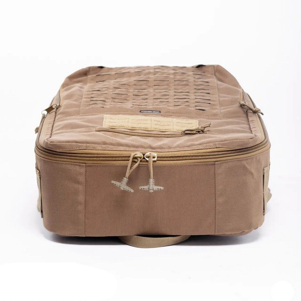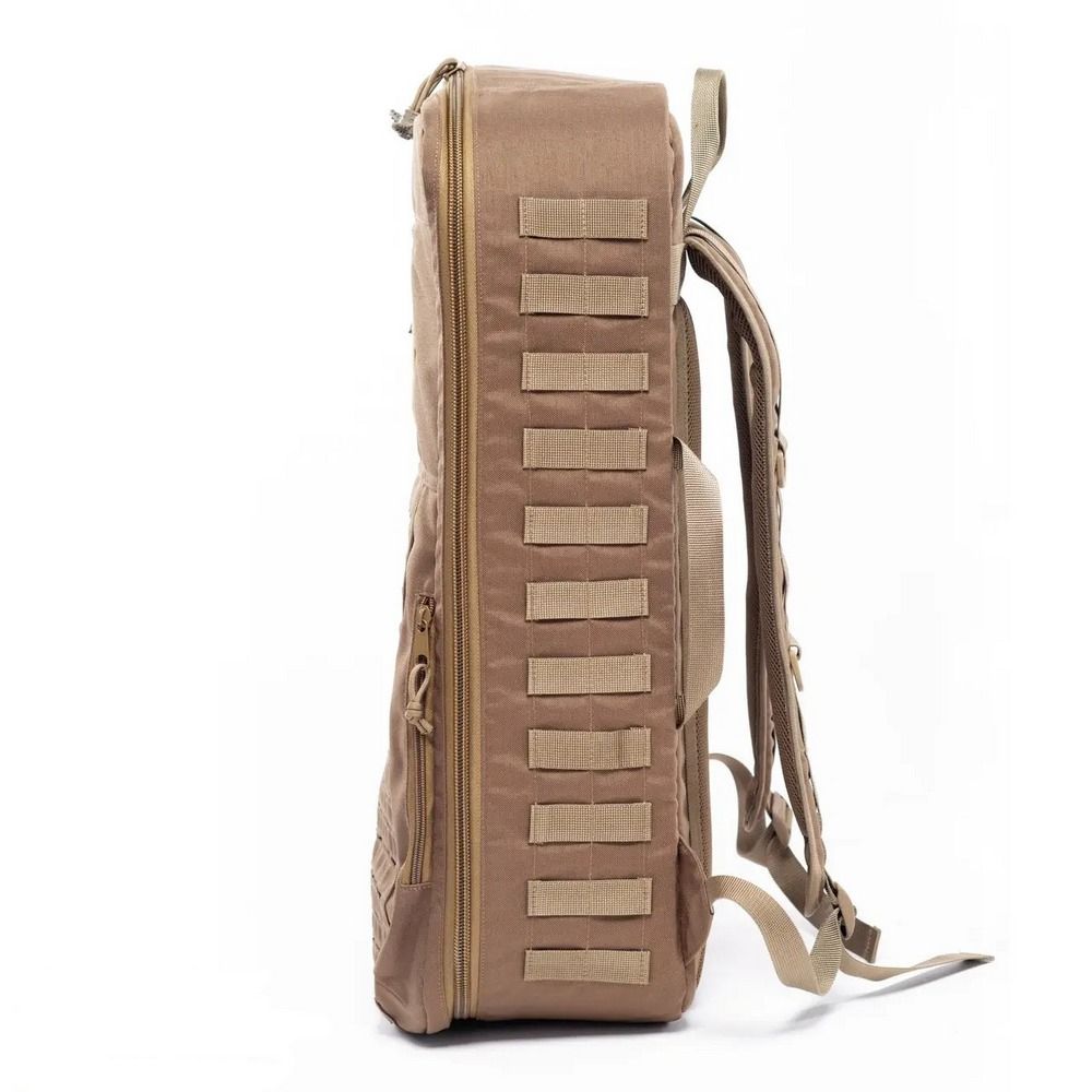 Захисний рюкзак з армуванням та амортизацією для перенесення та зберігання дронів. З дощовиком. Матеріал: кордура 1000 з IRR просоченням. Зовнішні розміри: 63×37×19 см. Внутрішні розміри: 60×34×16 см. Об'єм: 30 л. Вага: 1,8 кг. Колір: койот.