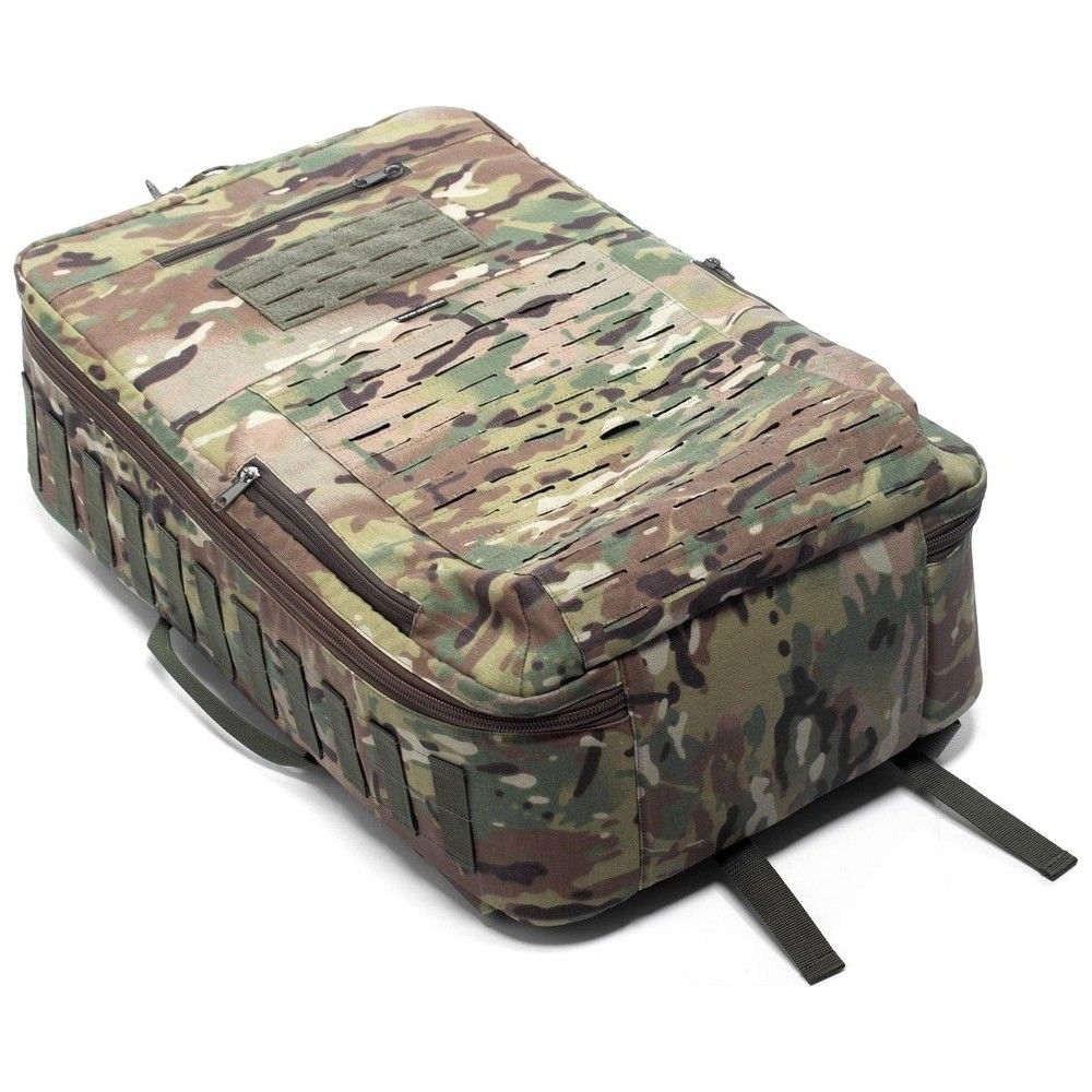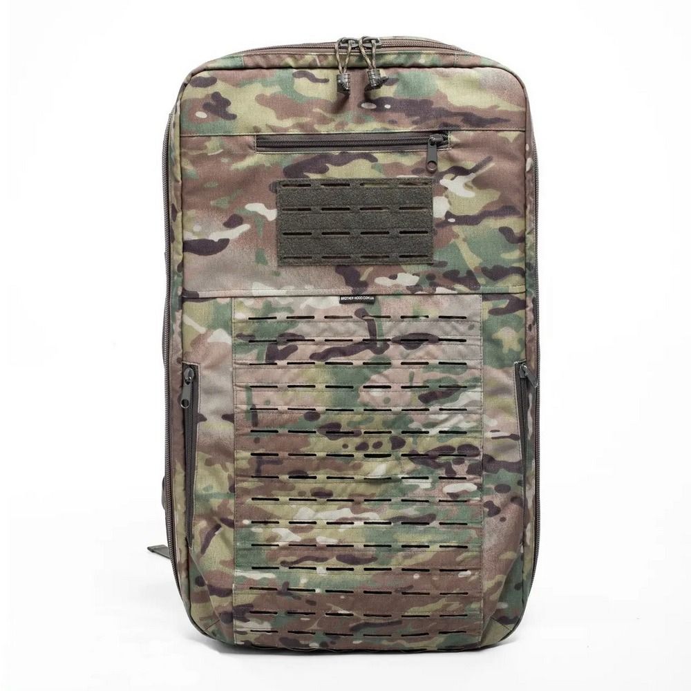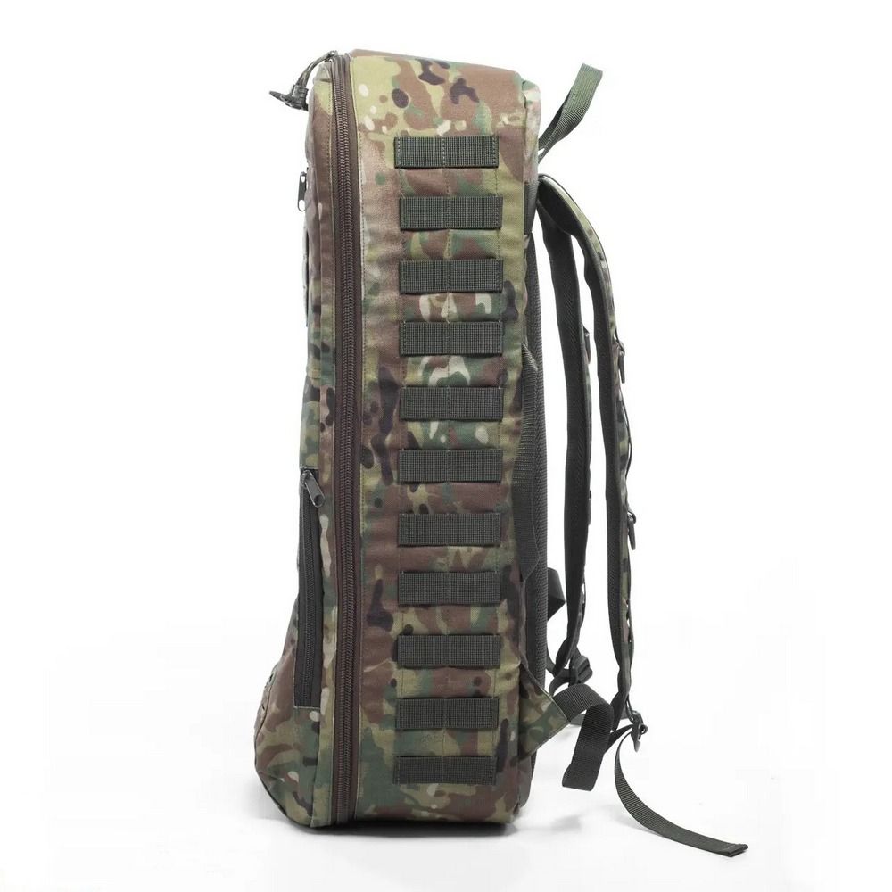 Захисний рюкзак з армуванням та амортизацією для перенесення та зберігання дронів. З дощовиком. Матеріал: кордура 1000 з IRR просоченням. Зовнішні розміри: 63×37×19 см. Внутрішні розміри: 60×34×16 см. Об'єм: 30 л. Вага: 1,8 кг. Колір: мультикам.