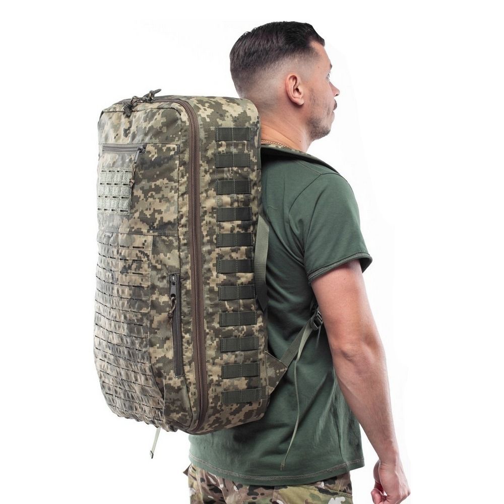 Захисний рюкзак з армуванням та амортизацією для перенесення та зберігання дронів. З дощовиком. Матеріал: кордура 1000 з IRR просоченням. Зовнішні розміри: 63×37×19 см. Внутрішні розміри: 60×34×16 см. Об'єм: 30 л. Вага: 1,8 кг. Колір: піксель.