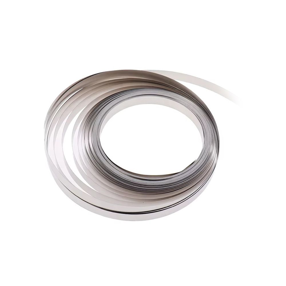 Нікелева стрічка товщиною 0.2 мм і шириною 8 мм призначена для з'єднання акумуляторних елементів. Має високу електропровідність, стійка до корозії та окислення, легко піддається точковому зварюванню. Використовується в збірці акумуляторних батарей, електроніці та промисловій техніці. Ціна вказана за 1 кг.