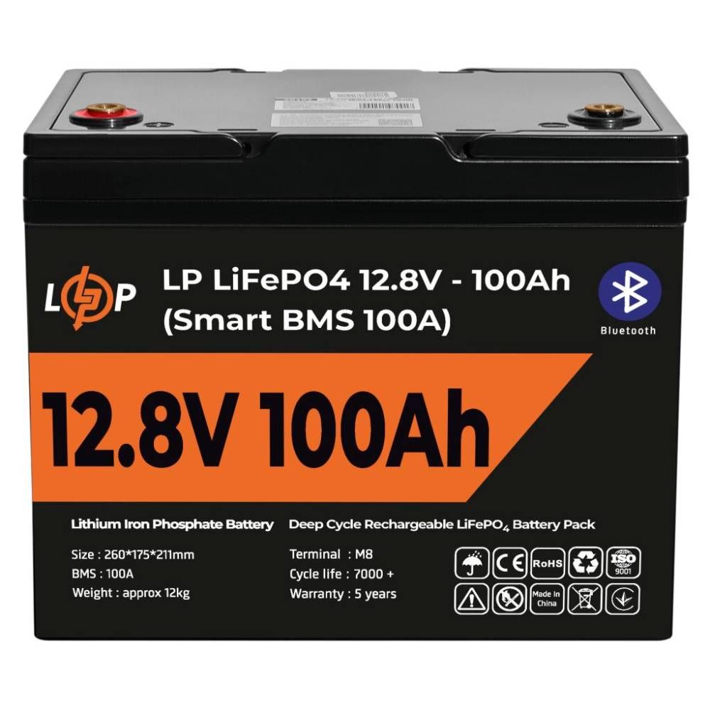 Акумулятор LP LiFePO4 12V (12,8V) - 100 Ah (1280Wh) (Smart BMS 100А) з BT пластик