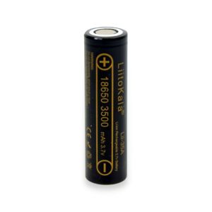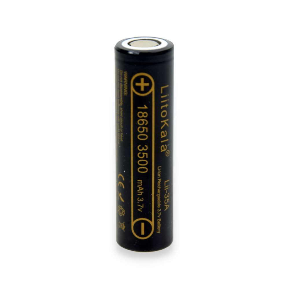 Літій-іонний акумулятор формату 18650 з плоским плюсовим контактом, без захисту. Номінальна ємність 3500 мАг. Струм розряду максимальний: 10A. Внутрішній опір: ≤40mΩ. Напруга номінальна: 3,7 В. Напруга повного заряду: 4,2 В. Напруга повного розряду: 2,75 В. Струм заряду: 1-2А