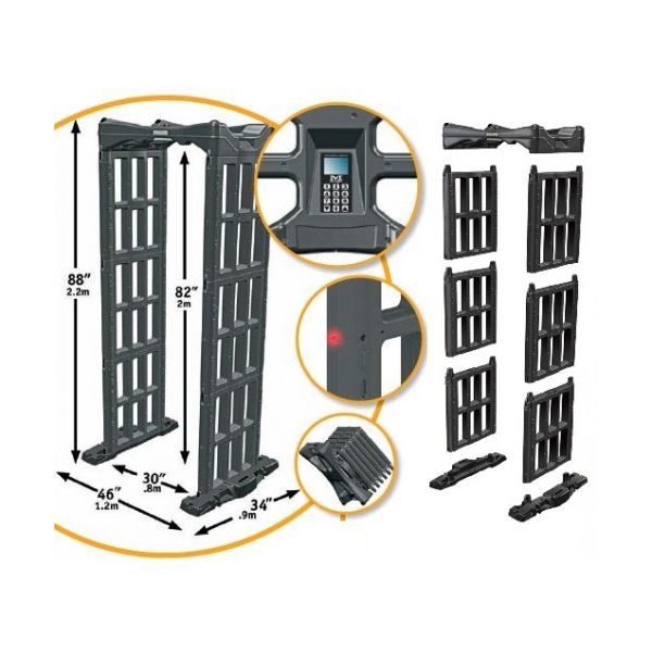 Арочний металодетектор складаний, 3 зони виявлення, 300 рівнів чутливості, світловий сигнал на стойках і звуковий сигнал, лічильник проходів, індикація зони виявлення, складання однією людиною за 5 хвилин, можливість пішого транспортування в складеному вигляді, 220х90 см