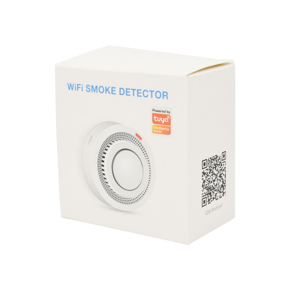 Бездротовий автономний датчик виявлення диму. Працює із застосунком Tuya Smart. Вимагає підключення до мережі WiFi 802.11b/g/n (тільки 2.4 ГГц). Зона детекції: 20м2 при висоті стель до 3м. Живлення від батарейок: 2*AAA 1.5 V