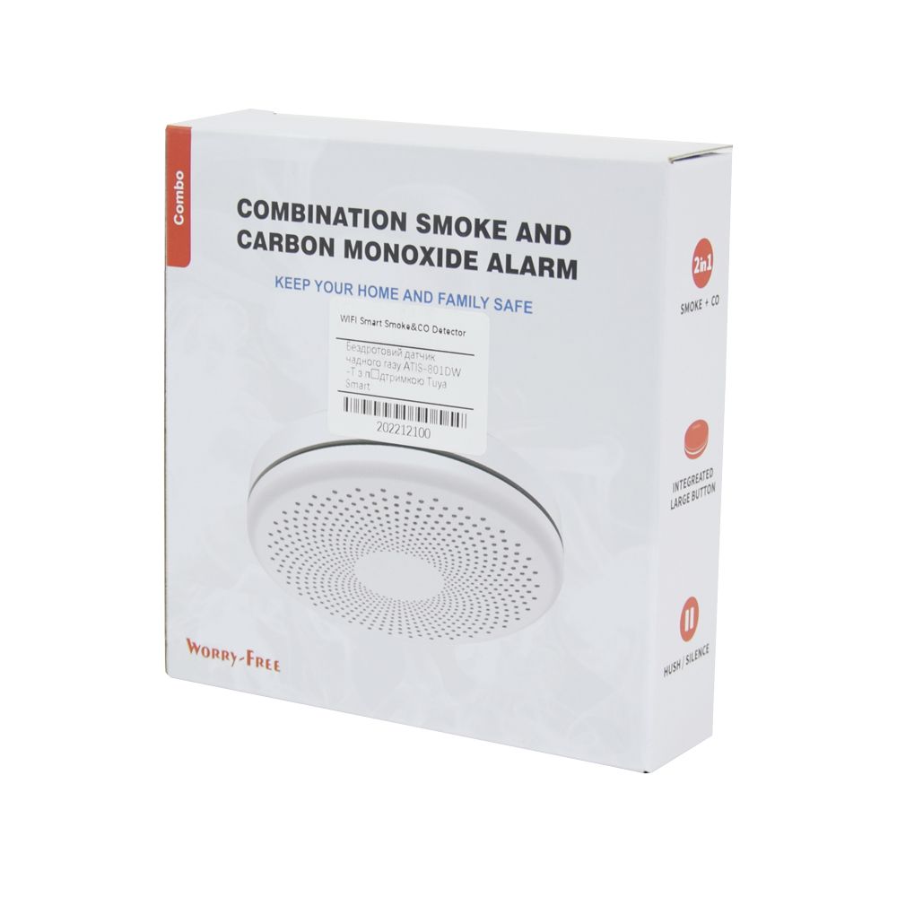 Бездротовий автономний датчик диму та чадного газу ATIS-801DW-T з підтримкою Tuya Smart