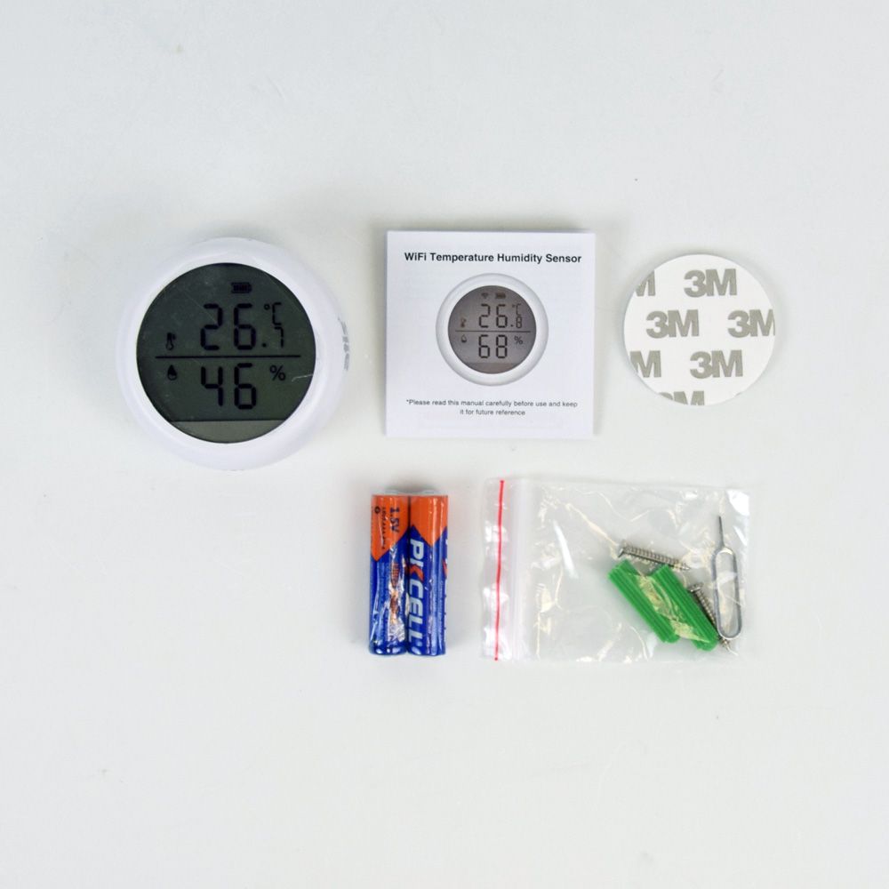 Підтримка застосунку Tuya Smart. Діапазон температури, що визначається: -10°C ~ +55°C. Діапазон вологості, що визначається: 0-99%. Вхідна напруга: DC 3 В LR03*2. Розміри: 60 x 60 x 26 мм. Вага: 50 г