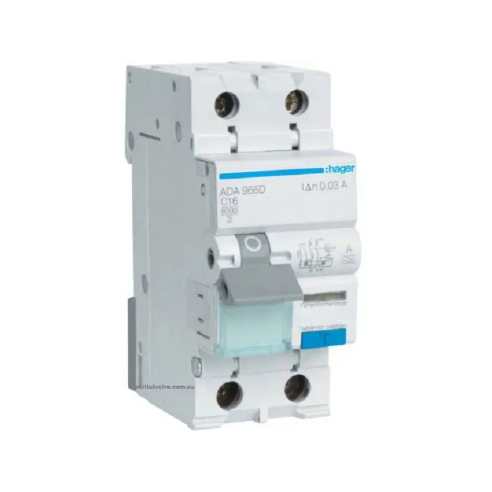 Диференціальний автоматичний вимикач Hager ADA966D ДАВ, 1P+N, 6kA, C-16A, 30mA, A