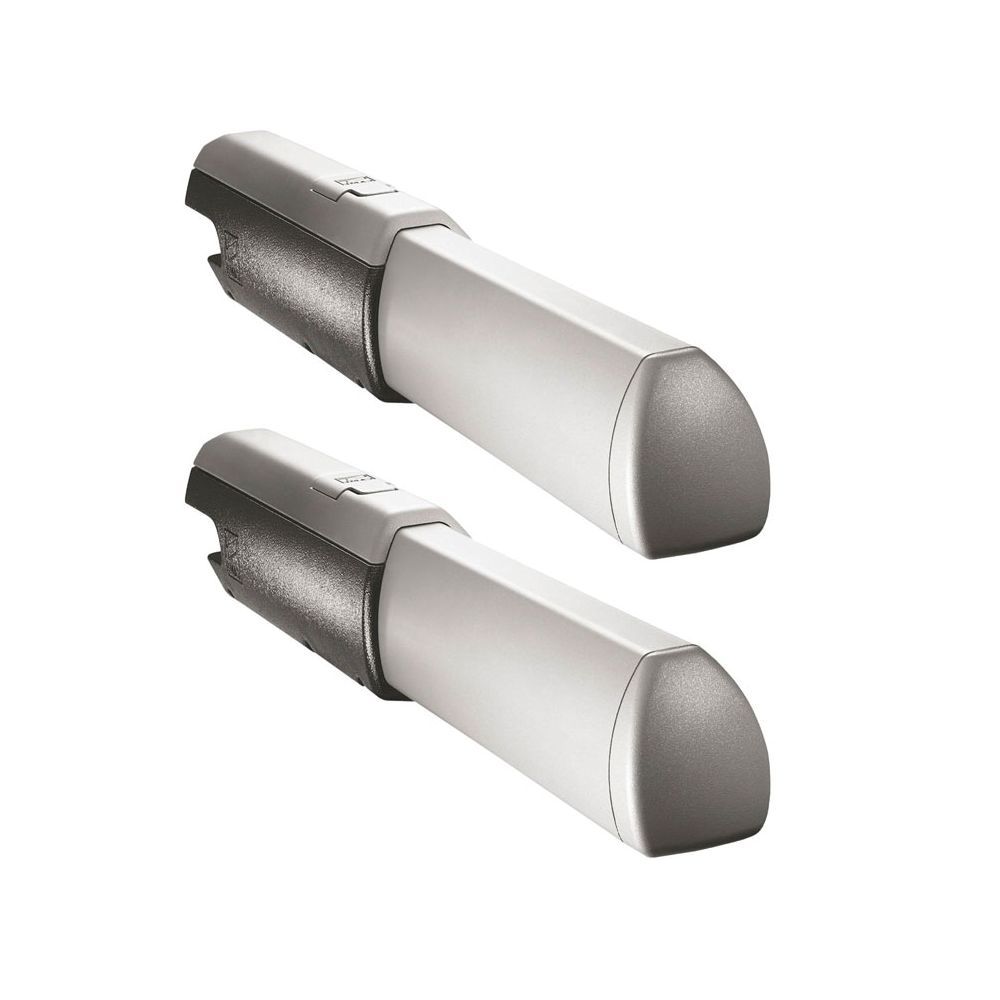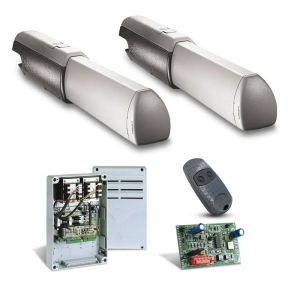 Комплект автоматики для розпашних воріт шириною до 3 м і вагою до 800 кг. До комплекту входять: приводи, що самі блокуються, із кінцевими вимикачами – 2 шт., короб із панеллю керування – 1 шт., радіоприймач одноканальний 433 МГц – 1 шт., пульт ДК двоканальний – 1 шт. Інтенсивність використання 50%, штовхаюче зусилля 3000Н, час відчинення на 90° 19сек., потужність 150Вт, живлення 230В