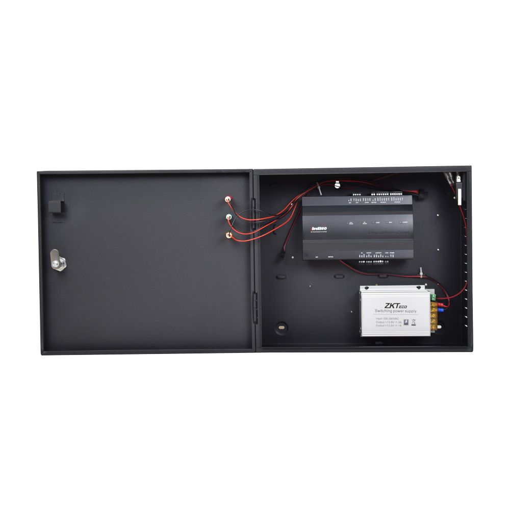 Контролер на 1 двері у боксі. Пам'ять 30 000 RFID карт, 3000 шаблонів відбитка пальця, 100 000 записів журналу подій. 4 зчитувачі, 1 кнопка, 1 геркон, 1 додатк.вхід, 1 реле, 1 додатк. реле. Інтерфейси - Wiegand, RS485, Ethernet. Розміри плати 185х106х36 мм, боксу 350х90х300 мм