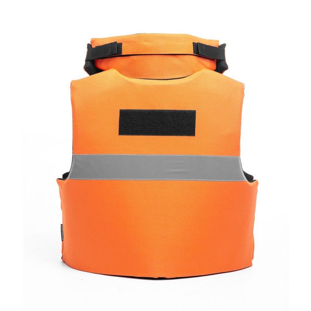 Дитячий захисний протиуламковий жилет. 2 клас захисту. Матеріал жилету: Oxford 600. Захисний шар: надвисокомолекулярний поліетилен (НВМПЕ). Товщина захисного елемента 9 мм. Колір помаранчевий. Місце захисту: плечі, спина, груди, живіт, боки. Площа захисту: 38 дм2. Розмір: М-L. Вага: 2.9 кг.