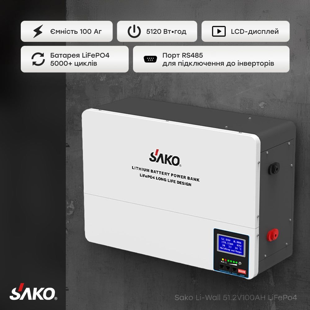 Акумуляторна батарея літій-залізо-фосфатна 100Аг 51.2В 5120Втг Sako SK-51.2V100Ah Li-Wall series LiFePo4 настінний монтаж