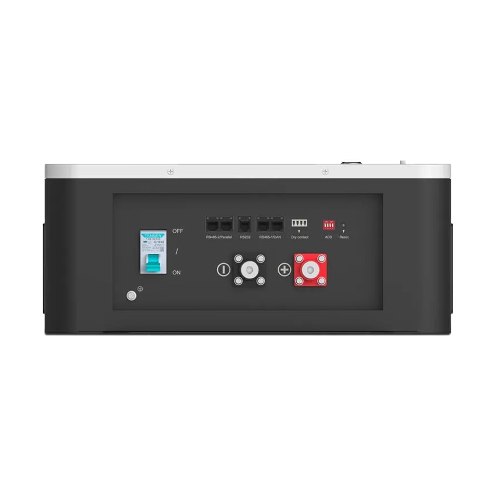 Акумуляторна батарея літій-залізо-фосфатна (LiFePO4); номінальна напруга 48 В; номінальна ємність 5120 Втг; максимальний струм заряду/розряду 100 А/100 А; ресурс: >6000 циклів заряджання-розряджання; комунікаційні порти CAN, RS485, RS232; в одну систему можна підключити до 16 акумуляторних модулів; настінний монтаж; захист від перерозряду, перезаряду, надмірного струму, короткого замикання, перегріву; розміри 420 / 600 / 175.5 мм; вага 48 кг