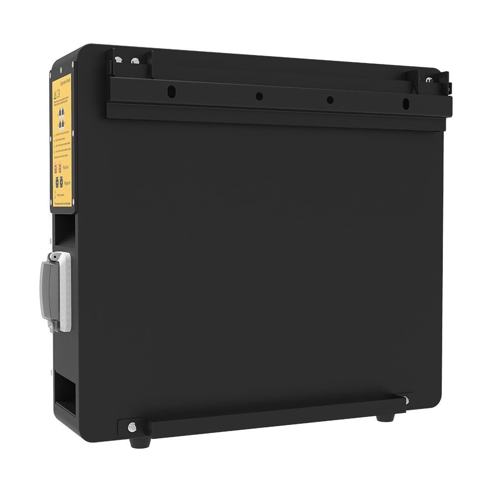 Настінна літій-залізо-фосфатна акумуляторна батарея для системи накопичення енергії; напруга 51.2 В; ємність 100 А·год / 5120 Вт·год; рекомендований струм заряду / розряду 50 А / 50 А, максимальний струм заряду / розряду 100 А / 100 А; ресурс: 6000 циклів заряджання-розряджання; комунікаційні порти CAN, RS485, RS232; Bluetooth для налаштування; LED-дисплей для відображення стану батареї; вбудований аерозольний пристрій пожежогасіння; клас захисту IP65; в одну систему можна паралельно підключити до 15 акумуляторних батарей; розміри 520 / 470 / 141.5 мм; вага 48.45 кг