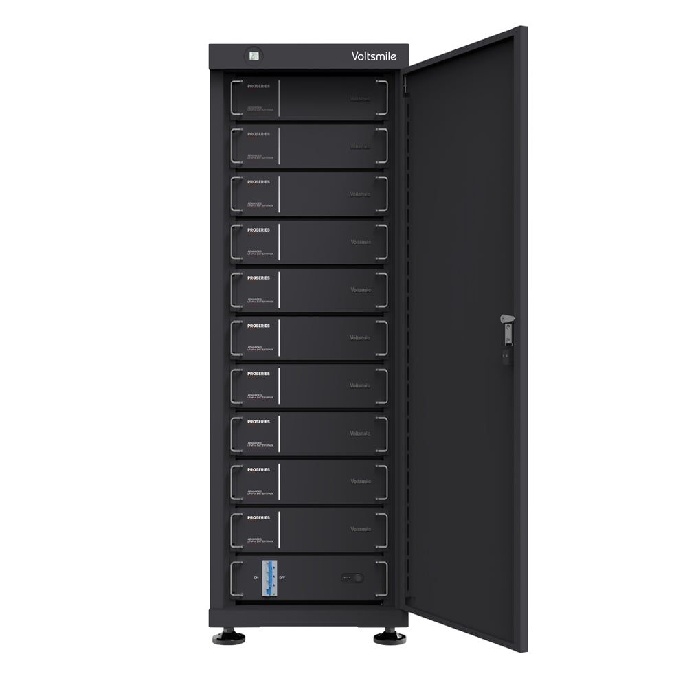 Блок високовольтних літій-залізо-фосфатних акумуляторних батарей з контролером, розміщені у стійці, складова системи накопичення та зберігання енергії (ESS); напруга 512 В; ємність 51.2 кВт·г; максимальний струм заряду/розряду 80 А/80 А; ресурс: 6000 циклів заряджання-розряджання; комунікаційні порти CAN, WiFi 2.4 GHz; клас захисту IP20; в одну систему паралельно можна підключити до 6 акумуляторних модулів; розміри 600 / 630 / 1600 мм; вага 560 кг